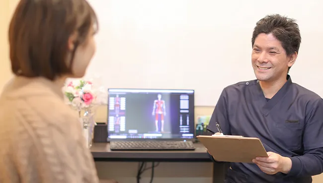 今後の施術方針をご説明します。ご不明な点など遠慮なくご質問ください。